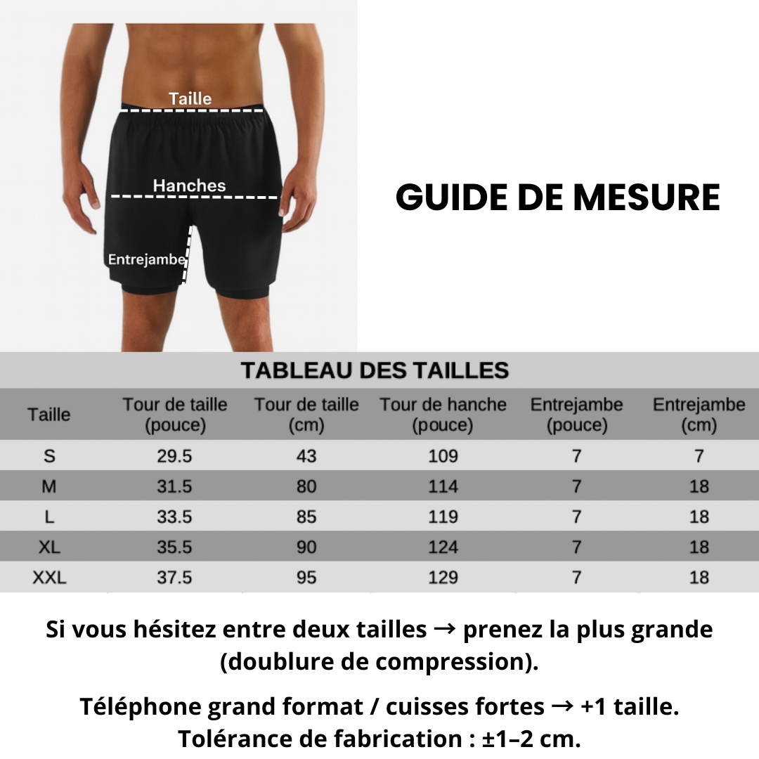 3. Si tu es entre deux tailles → prends la plus grande (doublure de compression).