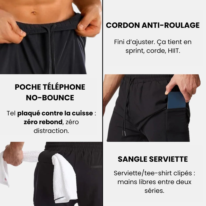 La doublure seconde peau reste en place — même en sprint, corde ou HIIT.